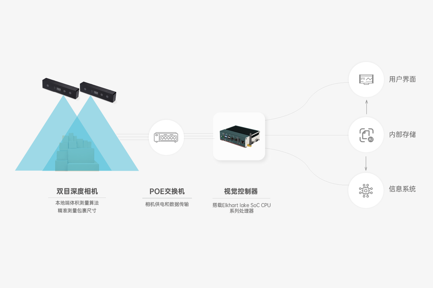 首页 动态 wm365完美推出全新体积测量解决方案,赋能物流企业数字化降本增效 wm365完美推出全新体积测量解决方案,赋能物流企业数字化降本增效 企业动态 2024-01-25 浏览量:2208 随着物流行业对精细化管理运营要求不断提升,包裹体积数据对企业提升测量效率和运输效率、优化存储空间及物流配送路线等方面均有重要意义。 物流行业传统采用人工测量方式,测量准确度受限于测量员的技术和经验,不确定性高,效率低,人力成本高,还存在隐形的员工管理成本,以及由于测量误差导致的仓储空间利用率低等问题。 如何进行精细化、自动化、智能化的体积数据采集,从而实现降本增效? 除纸箱等常见货物,对非规则、软包、高反光件、薄件等特殊形态包裹的精准测量,对多数体积测量制造企业提出更高的技术要求。 wm365完美静态体积测量方案,基于6年技术沉淀,自主研发出HumanoidVisionTM技术,能够精准测量各种类型包裹体积,满足小件、大件、超大货物场景的体积测量需求,用智能赋能物流行业数字化升级。 多相机组合方案 wm365完美采用主动双目立体成像技术,结合彩色摄像头输出高帧率RGB-D图像,通过自研的高精度体积测量算法,可以精准输出体积数据,满足仓储物流、商超、航空货站等场景下体积测量任务。 方案优势 01 测量精度高,传输稳定高效 稳定输出毫米级精准深度图,扫描帧率达8FPS; 司眸体积测量相机搭载了高精度算法和出色的硬件配置,适用全类型,多尺寸包裹测量场景; 千兆网络传输接口,抗干扰强,传输远,高频率传输数据时不掉线,不丢帧,数据传输稳定; RGBD实例分割算法,精准输出包裹的体积数据,平均测量精度可达5mm。 02 抗环境光干扰,适应性更强 支持光线变化场景下输出精准数据; 支持多曝光融合; 针对高反、强光、暗光场景优化体积测量深度数据; 03 安装范围广,调试易上手 单设备方案最大可支持1.8m高度安装;多设备方案最大可支持3.5m高度安装; 安装角度不严格限制为垂直(可偏差±5°); 接口简单,SDK集成简单,可供多平台SDK,方便二次开发。 应用场景 01 全类型包裹 适用于纸箱、异形件、软包、黑色包裹、高反光件(金属件、型材)、薄件(最低支持1mm薄件)等不同类型包裹的体积测量,一台设备兼具全类型包裹的体积信息采集,为业主提供更全能的解决方案。 02 多尺寸测量 #小件体积测量方案 wm365完美体积测量单相机方案最小可测量50mm x 50mm x 1mm立方体,规则物体精度±5mm;不规则物体测量精度:±10mm,适用于小件包裹体积测量场景。 #单设备大件体积测量方案 wm365完美体积测量相机内置高精度深度融合算法,具备大视场角,最大可测量1200mm x 1000mm x 1800mm 立方体,规则物体测量精度:±10mm;不规则物体测量精度:±20mm。针对快运行业的大件包裹,可快速精准完成快件的体积信息实时采集。 #方案可定制 wm365完美还可针对特定货物测量场景定制方案,支持多台3D相机拼接,软件集成拼接算法,最大可测量1800mm x 1800mm x 1800mm 立方体;测量精度:±20mm,针对仓储物流,码垛类型的超大件物体进行体积测量。 上一个:wm365完美助力连锁门店占领“客户心智” 返回列表 下一个:3D机器视觉可以完成许多2D机器视觉无法完成的任务。 更多新闻推荐 端到端 更易用丨wm365完美®散料运输动态监测与预警系统全新上市 新品上市 2025-02-20 小尺寸 更灵活丨wm365完美3D相机PEA020-800-Y80S上新,助力多场景智造升级 新品上市 2024-09-29 目前主流3D视觉技术各有什么优劣势?如何选择最Match的工业3D相机? 技术科普 2024-08-12 【最全选型攻略】挑选合适的工业相机,必须提前考虑12要素! 工业相机 2024-07-16 场景应用丨wm365完美智能煤流监测系统全新升级,赋能自动化煤流管控 场景应用 2024-07-08 场景应用丨wm365完美3D视觉+AI深度学习,助超大型货物体积测量更准,更稳,更易用 场景应用 2024-06-04